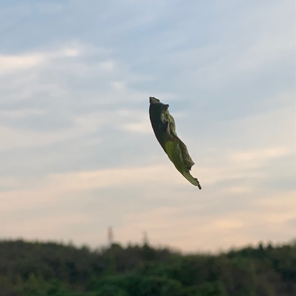 道の真ん中で蜘蛛の糸に吊るされている木の葉がクルクル回っている様子は、まるで空中でダンスを踊っているかのようでした。