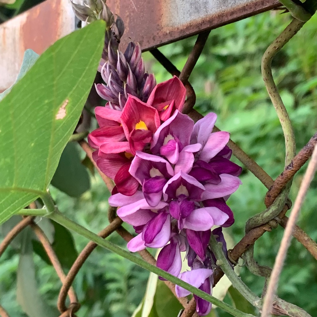 今朝は、綺麗な葛の花とダンスをする木の葉に出会いました。