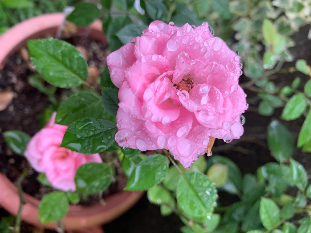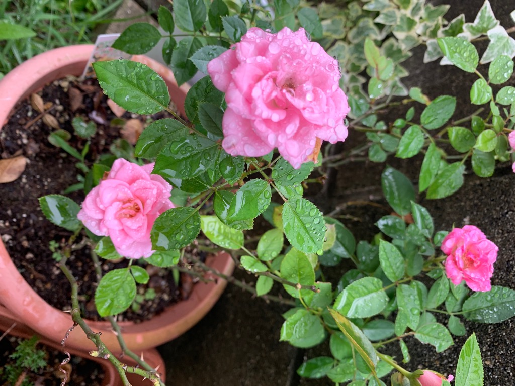 去年の春にピンク色の可愛いミニバラを購入しましたが、今年の春は蕾がつかずにいました。それが、この夏の終わりに綺麗に花を咲かせてくれました。